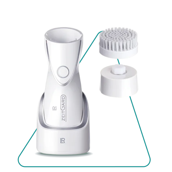 - Очищаючий крем LR ZEITGARD разом із насадкою-щіткою забезпечує м’яке та глибоке очищення.